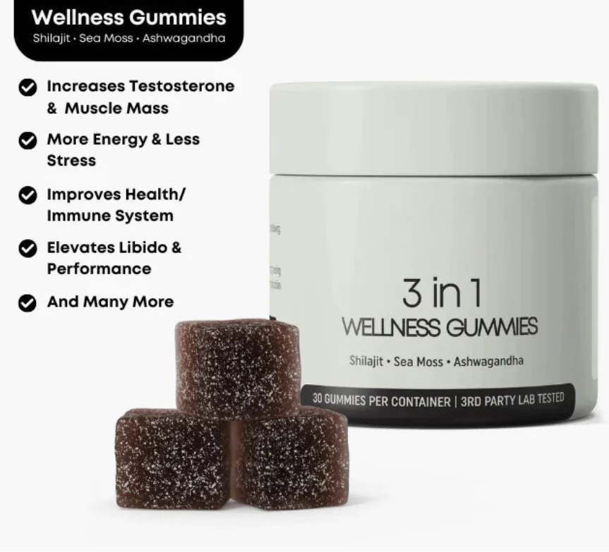 These gummies are designed to enhance your energy, stamina, and overall wellness. The unique blend of Shilajit, Ashwagandha, and Sea Moss promotes physical performance and supports healthy testosterone levels, making them perfect for active lifestyles and stress management.